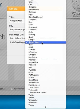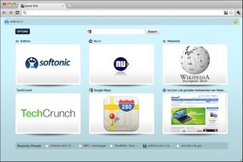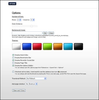 Via de opties bepaal je hoeveel rijen en kolommen je nodig hebt, met een maximum van 9 bij 9. Ook kies je hier een achtergrondkleur of gebruik je zelfs een wallpaper van het internet. Na met de rechtermuisknop op een hokje te klikken, voer je de naam en URL (link) van een site in. Ook voor het plaatje gebruik je een URL; het is helaas niet mogelijk afbeeldingen van je computer te importeren. Speed Dial bevat ook tientallen logo's van grote sites als Google, Facebook, IMDb, Amazon en de BBC.